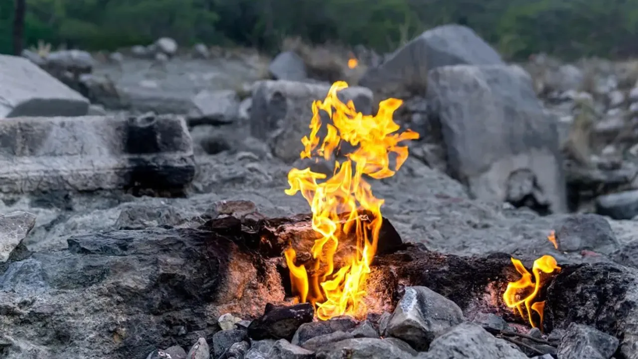Ziyaretçiler, sürekli yanan alevleri izlerken tarih ve doğa arasında büyüleyici bir deneyim yaşıyor.