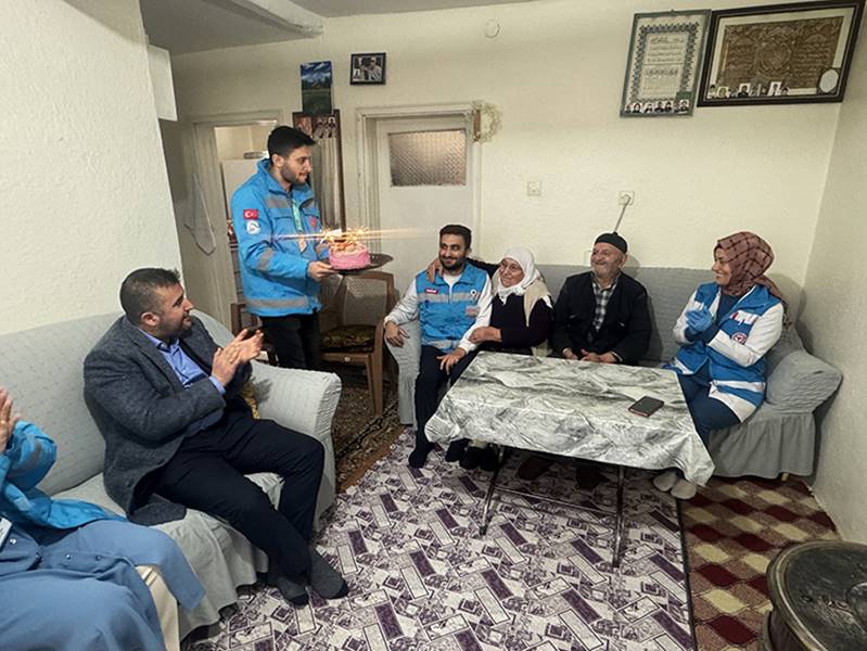 Yozgat Şehir Hastanesi Başhekimi Uzman Dr. Mustafa Kozan ve sağlık ekibi, Atmaca’nın evinde gerçekleştirdikleri sağlık kontrollerinin ardından, kendisine doğum günü pastası getirerek kutlama yaptı.