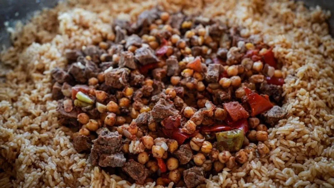 Daha sonra bu karışımın suyuna pirinç veya bulgur eklenerek pilav hazırlanıyor. Etin kendi suyuyla pişen pilavın aroması ise yemeğin en belirgin özelliklerinden biri olarak öne çıkıyor.