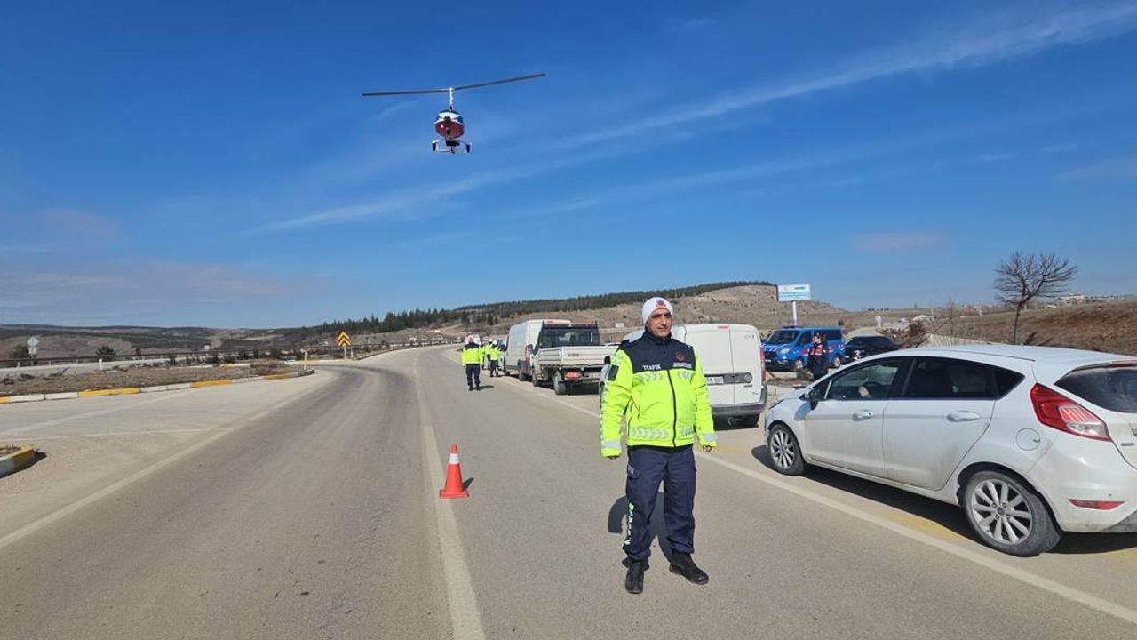 İki farklı noktada konuşlanan trafik jandarma timleri, cayrokopter ile belirlenen ihlallere yönelik denetim gerçekleştirdi.