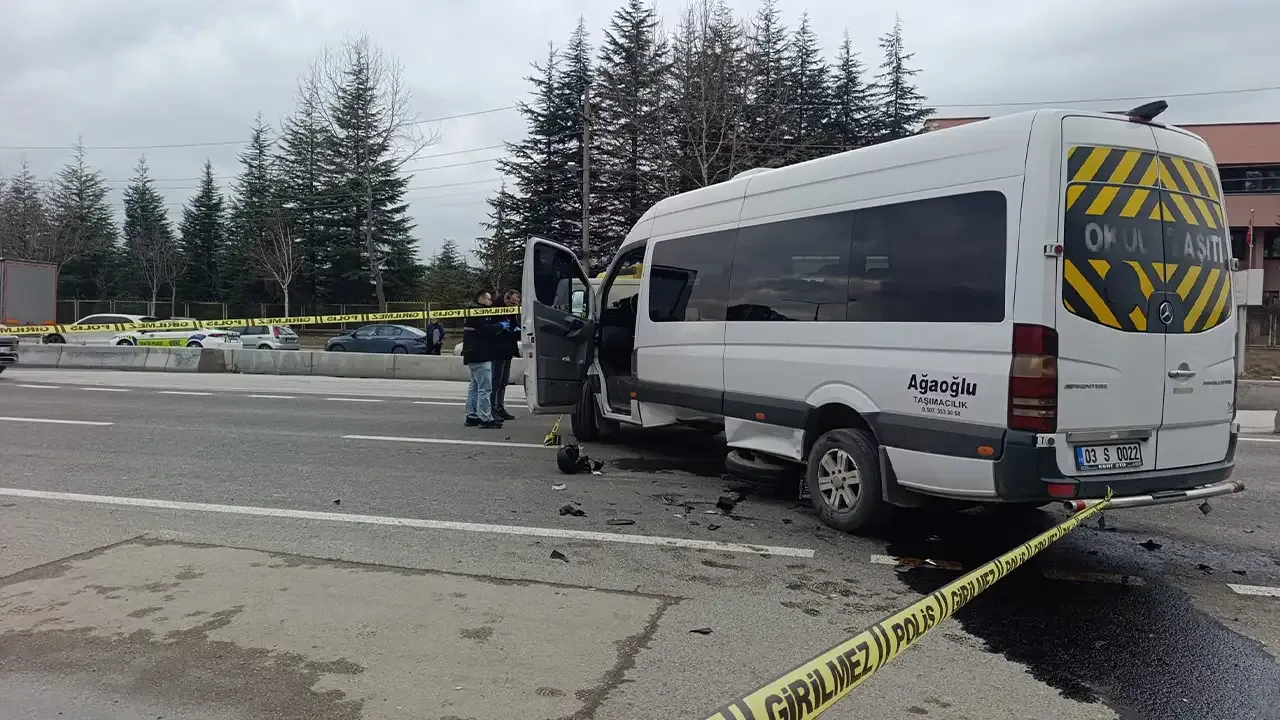 Afyonkarahisar’da minibüsün motosiklete çarpması sonucu bir kişi yaralandı. Z.T. idaresindeki 03 S 0022 plakalı okul servis aracı, Mareşal Fevzi Çakmak Bulvarı’nda F.Y. (22) yönetimindeki 34 AL 1208 plakalı motosikletle çarpıştı.