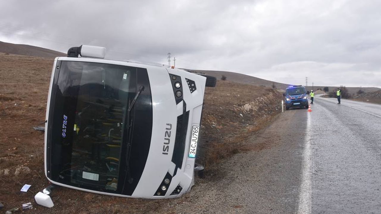 Afyonkarahisar'ın Dinar ilçesinde turistleri taşıyan bir midibüsün devrilmesi sonucu 3 kişi yaralandı.