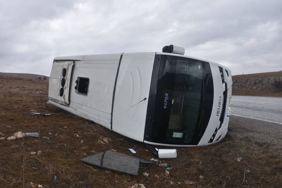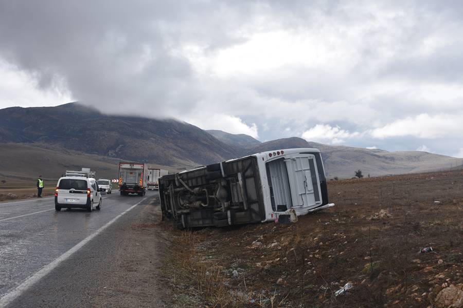 E.Y. (55) yönetimindeki 35 CJU 765 plakalı tur midibüsü, Dinar ilçesi Bağcılar köyü Çobançeşme mevkiinde seyir halindeyken kontrolden çıkarak devrildi.