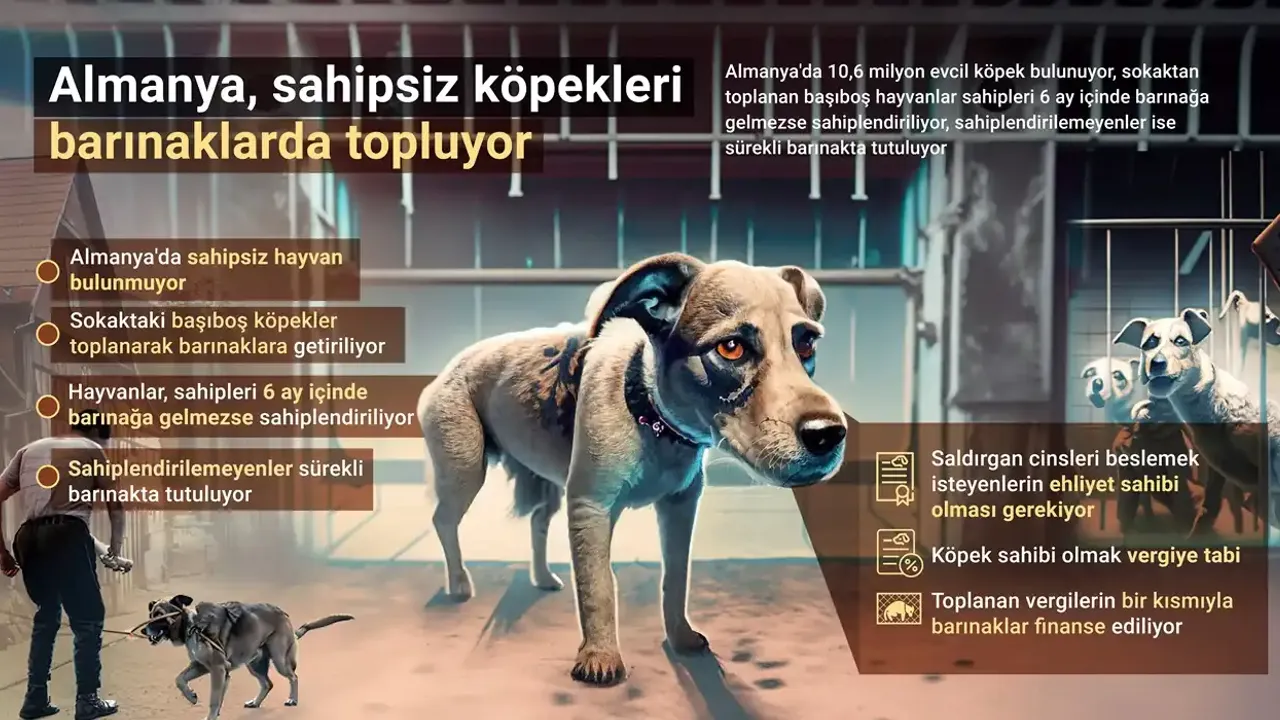 Ülkede yaklaşık 10,6 milyon evcil köpek bulunuyor ve sokaklarda başıboş dolaşan hayvanlar için bir sisteme sahiptir. Bu sisteme göre, başıboş olarak toplanan hayvanlar sahipleri tarafından 6 ay içinde barınağa gelmezlerse sahiplendirilmek üzere bekletilir.Eğer bu süre içinde sahiplendirilemezlerse, sürekli olarak barınaklarda tutulurlar. Almanya'nın bu sistemi, sokaklardaki hayvanların refahını ve güvenliğini sağlamak için önemli bir adımdır.