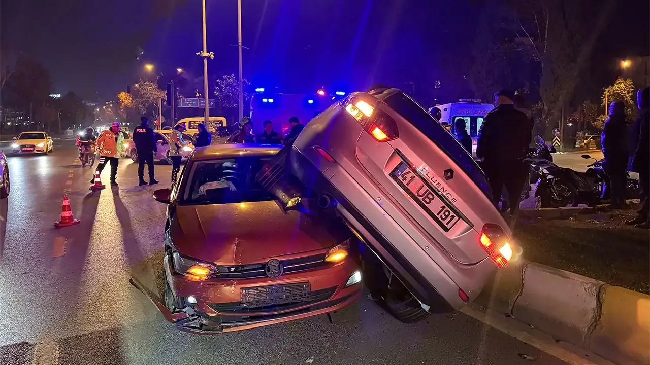 Kaza sonucu 41 UB 191 plakalı otomobil diğer aracın üstüne çıktı.