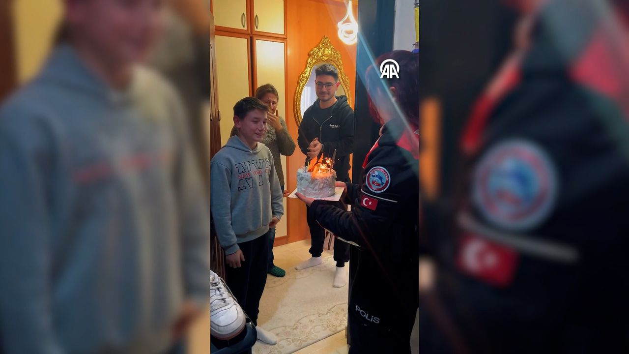 Yunus Timleri, 13 yaşına giren Enes Cıstak’ı evinde ziyaret ederek doğum gününü kutladı. Polisler, doğum günü pastasının mumlarını üfleyen Enes ile sohbet etti ve çeşitli hediyeler verdi.