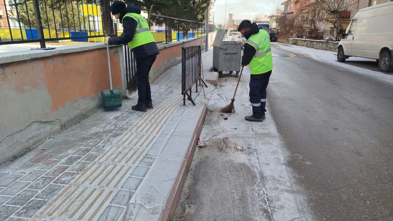 Çalışmalar kapsamında okul çevresindeki sokaklar ve kaldırımlar süpürüldü. Yol kenarlarında ve bina diplerinde biriken atıklar temizlenerek yaya geçişini zorlaştıran noktalar düzenlendi. Yoğun kar yağışının ardından karla kaplanan bölgelerde tuzlama çalışmaları yapıldı.