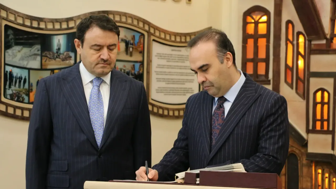 Kütahya Valisi Musa Işın’ı makamında ziyaret eden Sanayi ve Teknoloji Bakanı Mehmet Kacır, Valilik Şeref Defteri’ni imzaladı.