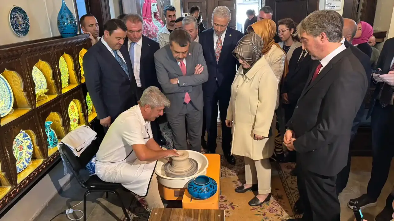 Çini ve seramik sanatını yakından inceleyen Tekin, çini ve seramik sanatçılarından eserlerin yapımıyla ilgili detaylı bilgi aldı.