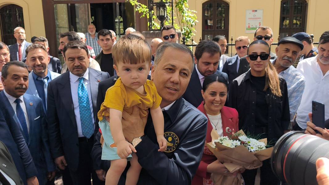 Caddede vatandaşlarla sohbet eden Yerlikaya, özellikle çocuklarla yakından ilgilendi.