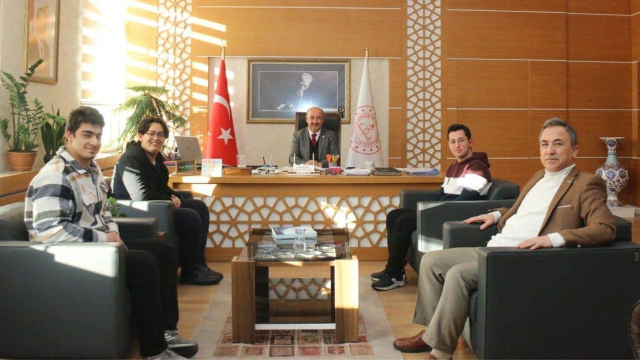 "Lise Öğrencileri Ulusal Öğrenci Kongresi ve Poster Sunumu Yarışması"nda teşvik ödülü alan Nafi Güral Fen Lisesi öğrencileri İl Milli Eğitim Müdürü Hasan Başyiğit’i makamında ziyaret ettiler.