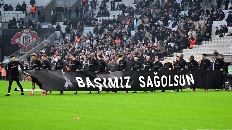 Beşiktaşlı futbolcular da Bolu’daki yangın felaketine kayıtsız kalmadı. Maç öncesi ısınmaya, “Başımız sağ olsun” yazılı bir pankartla çıkan siyah-beyazlılar, acıyı paylaşarak anlamlı bir mesaj verdi.