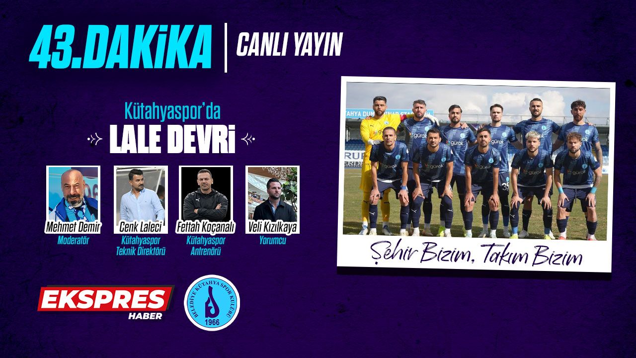 Moderatörlüğünü Mehmet Demir’in yaptığı, Kütahyasporlu eski futbolcu Veli Kızılkaya, Kütahyaspor Teknik Direktörü CenkLaleci ve Kütahyaspor Antrenörü Fettah Koçanalı’nın katıldığı 43.Dakika programı Ekspres Gazetesi ve Kütahya Ajansı sosyal medya sayfalarından canlı olarak yayınlanıyor.