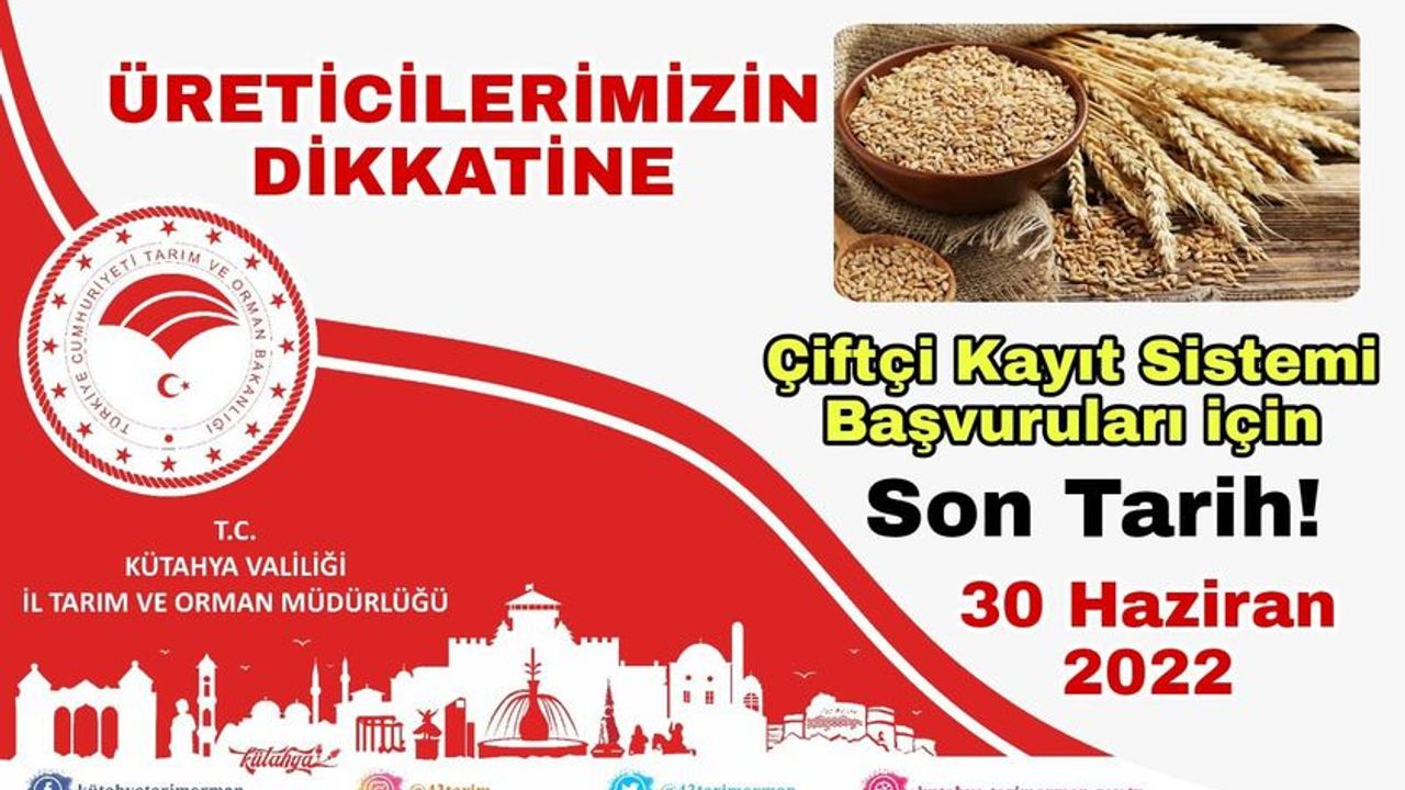 2022 Yılı “Çiftçi Kayıt Sistemi (ÇKS)” Desteklemeleri için son başvuru tarihi 30 Haziran 2022 olarak belirlendi.