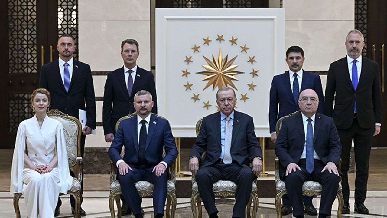 Cumhurbaşkanlığı Külliyesi’nde gerçekleşen törende, Belarus Büyükelçisi Anatoly Glaz, Brezilya Büyükelçisi Gilda Motta Santos Neves, Ekvador Büyükelçisi Pedro Vintimilla, Gürcistan Büyükelçisi Archil Kalandia ve Vietnam Büyükelçisi Dang Thi Thu Ha, Cumhurbaşkanı Erdoğan’a güven mektuplarını sundu.