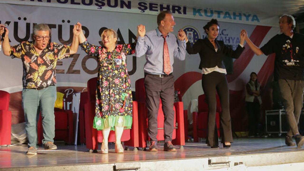 Kütahya Belediyesi kültür sanat etkinliklerinde Dikkat Aile Var tiyatro oyunu vatandaşlarla buluştu. Oyun sonunda Belediye Başkanı Alim Işık, yönetmen Metin Karaman’a çini hediye etti.
