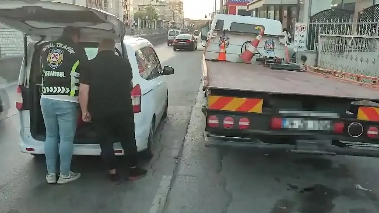 Sosyal medyada paylaşılan görüntülerde, 3 kişinin bir caddeyi çekici yardımıyla trafiğe kapatarak doğum günü kutlaması yaptığı ve bu durumun trafik akışını engellediği görüldü.