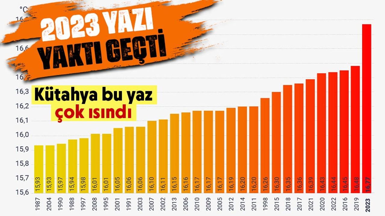 Kütahya’da termometreler 41 dereceyi görürken, bu yaz hava sıcaklığı ortalamanın 0,66 derece üzerine çıkarak 16,77 derece oldu. Avrupa Birliği'nin (AB) finanse ettiği Copernicus İklim Değişikliği Servisi'nin verilerine göre, 2023'ün haziran, temmuz ve ağustos aylarında ortalama hava sıcaklığı küresel olarak en yüksek seviyeye çıktı.