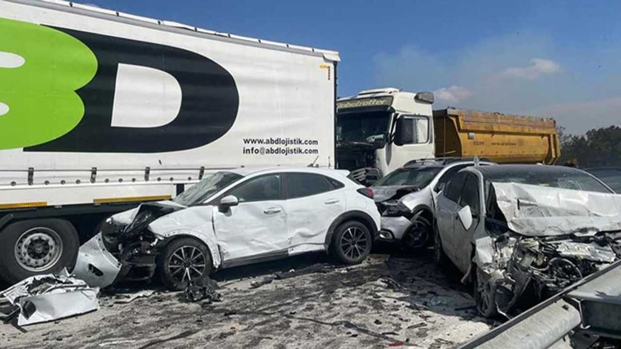 8 otomobil, 3 tır ve 1 kamyonun karıştığı zincirleme trafik kazası meydana geldi.
