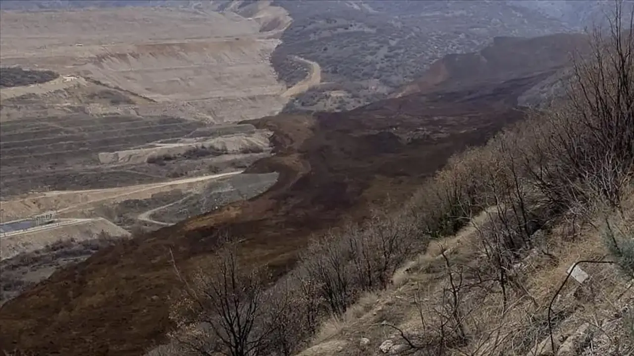Erzincan'ın İliç ilçesinde, altın madeninin geniş bir bölgeyi kapsayan yığın liç alanında toprak kayması meydana geldi.