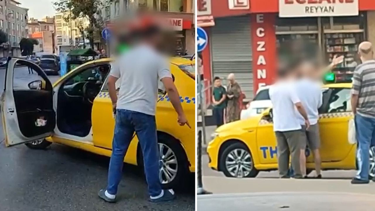 Öte yandan, taksi şoförünün servis sürücüsünü tehdit ettiği ve vatandaşların sürücüleri sakinleştirmeye çalıştığı anlar cep telefonu kamerasıyla kaydedildi.
