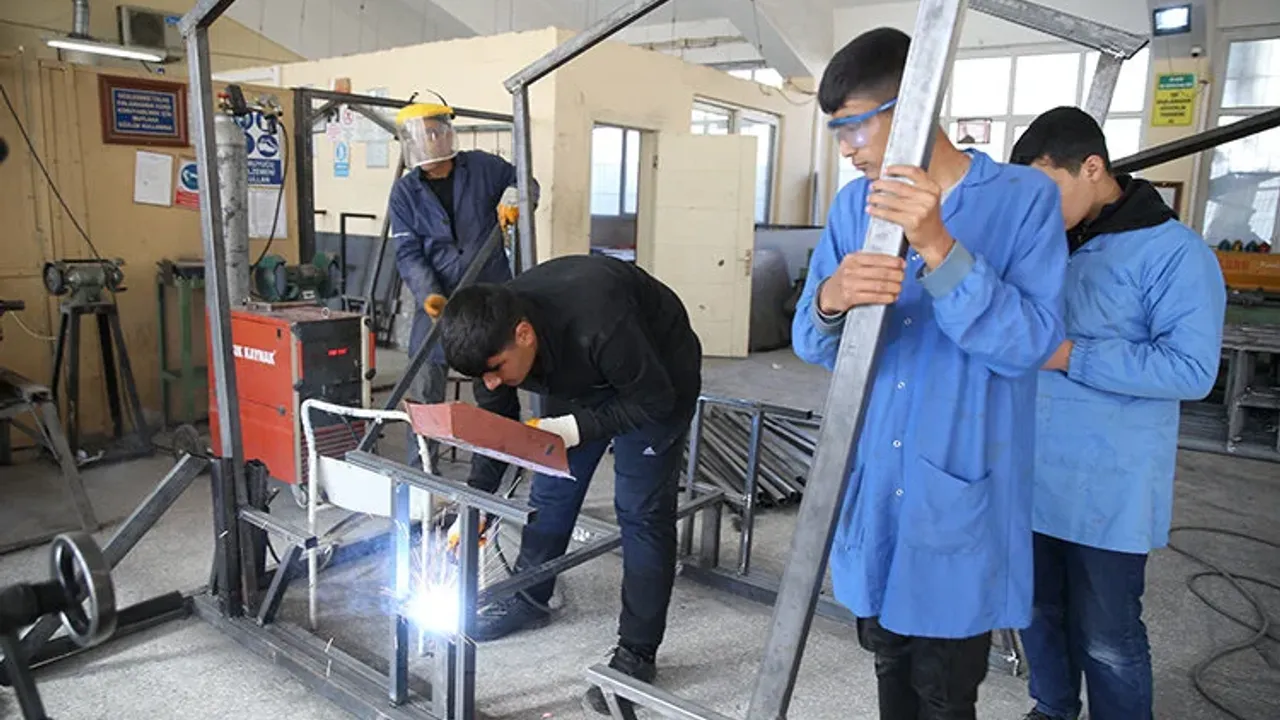 Okul müdürü Bülent Yıldız, 32 yıl önce eğitime başlayan okulda metal, mobilya, tesisat, inşaat, bilişim motor ve elektronik bölümlerinde il geneli için birçok donatı malzemesi ürettiklerini söyledi.