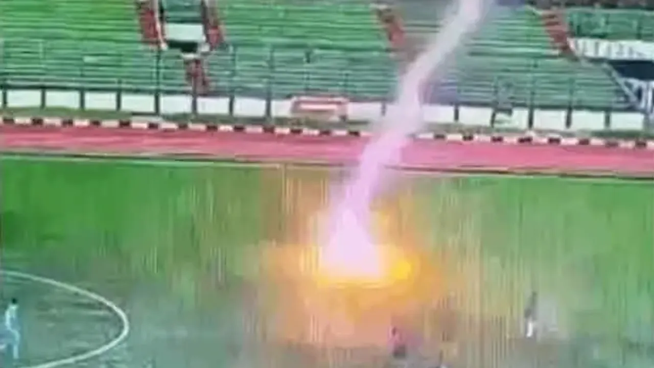 Endonezya'nın Bandung kentindeki Siliwangi Stadı'nda oynanan bir futbol maçında, futbolcunun üzerine yıldırım düşmesiyle korkunç bir olay yaşandı.