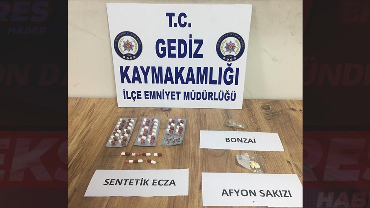 Şüphelilerin adreslerine operasyon düzenleyen ekipler, yaptıkları aramada,43 adet uyuşturucu hap, 2 parça afyon sakızı ve 2 gram sentetik uyuşturucu ele geçirdi.