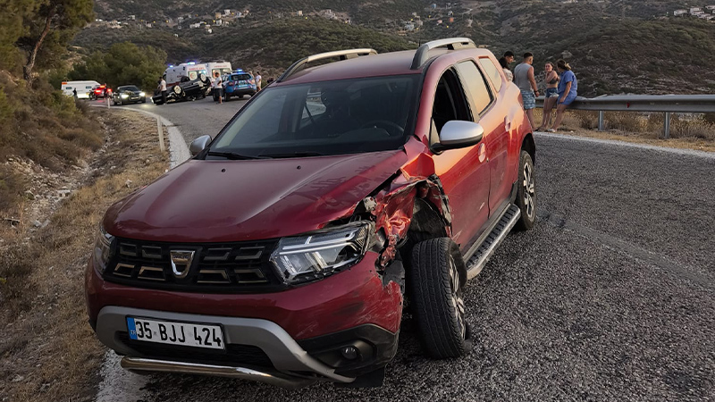 İzmir’in Foça ilçesinde iki otomobilin çarpışması sonucu biri çocuk 4 kişi yaralandı.