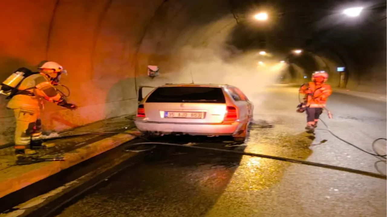 İzmir Konak Tüneli'nin Buca yönünde seyir halinde olan 35 AJD 863 plakalı otomobil, henüz belirlenemeyen bir nedenle aniden alev aldı. Yangını fark eden sürücü, güvenlik amacıyla aracını tünelde durdurdu ve durumu yetkililere bildirdi.