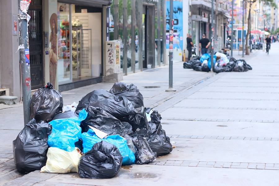 Grev nedeniyle çöp toplama işlemleri durdu. Şehir merkezinde çöpler kaldırım ve sokaklara taştı.