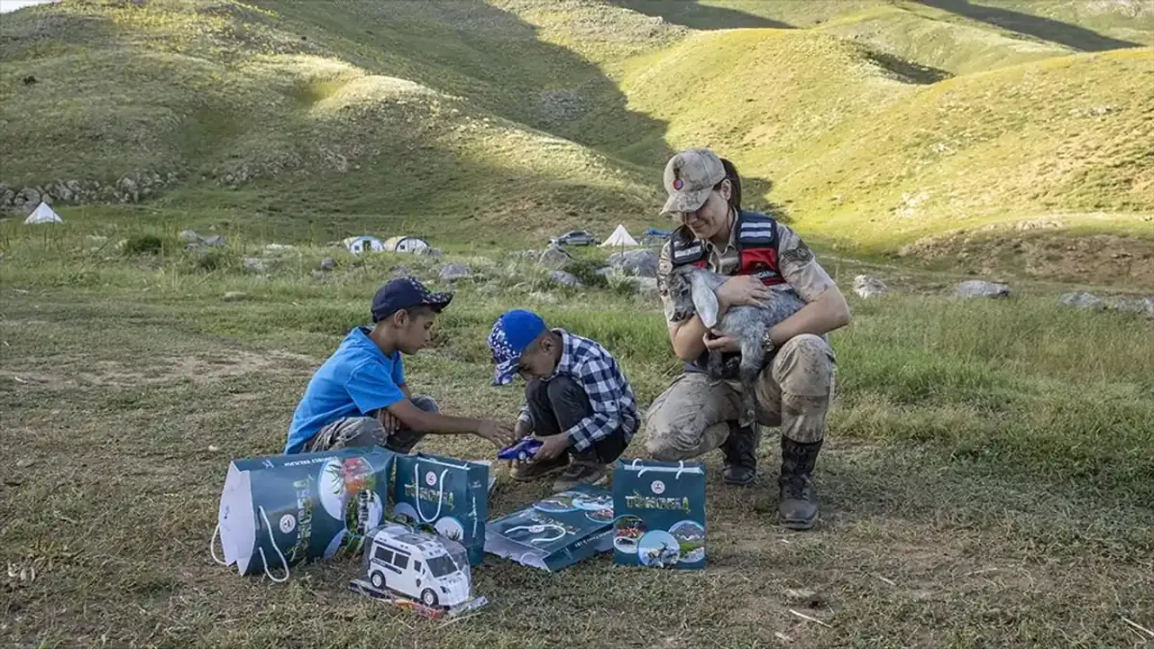 Pülümür ilçesindeki 2 bin metre rakımlı Hengirvan Yaylası'na giden jandarma ekipleri, buradaki çocuklara kitap ve oyuncak gibi hediyeler verip, oyunlar oynayarak minikleri mutlu etti.