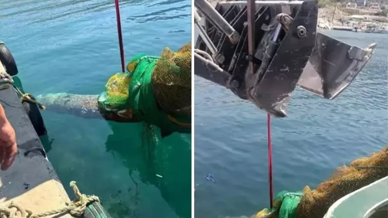 İzmir’in Karaburun ilçesi açıklarında uluslararası sularda avlanan “Kaptan Mustafa 2” adlı balıkçı teknesi, ağlarına takılan ağır bir cisim nedeniyle limana dönmek zorunda kaldı. Tekne kaptanı ve mürettebat, limanda kepçe yardımıyla çıkardıkları cismin bir denizaltı torpidosu olduğunu fark etti.