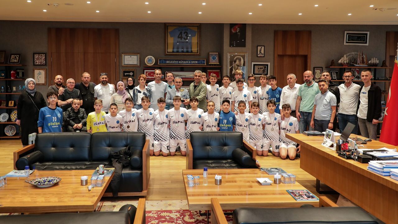 Galatasaray, Beşiktaş, Başakşehir, Konyaspor, Altay ve Bursaspor gibi büyük takımların katıldığı, Uluslararası Hendek Cup Tayfur Havutcu Futbol Turnuvası'nda üçüncü olan Belediye Kütahyaspor U-14 takımı kupayı Belediye Başkanı Alim Işık'a takdim etti. Belediye Kütahyaspor’un geleceği konumunda olan U 14 takımı Hendek Cup Tayfur Havutcu Futbol Turnuvasına damga vurdu. Süper ligin ve TFF 1. Ligin alt yapı noktasında önemli takımlarının da yer aldığı turnuvada Belediye Kütahyaspor U-14 takımı üçüncü oldu. Belediye Başkanı Prof. Dr. Alim Işık’ı makamında ziyaret eden U 14 takımı ve idarecileri kazandıkları kupayı Başkan Işık’a takdim ettiler. Takıma başarılarından dolayı tebrik eden Başkan Işık, Belediye Kütahyaspor’un geleceği olan genç oyuncuların desteklenmesinde belediye olarak üzerlerine düşen her görevi yaptıklarını ve yapmaya devam edeceklerini ifade etti.