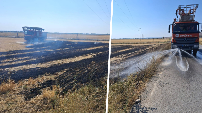 Kütahya’nın Altıntaş ilçesinde, Yapılcan köyü yol ayrımı mevkiinde anız yangını çıktı.
