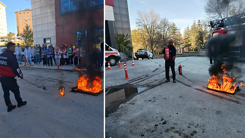 Altıntaş Devlet Hastanesi personeline, Altıntaş İtfaiyesi tarafından yangın eğitimi ve tatbikatı düzenlenerek olası acil durumlara karşı bilinçlendirme çalışması yapıldı.