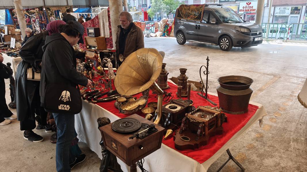 Vatandaşlar, nostaljik ürünlerden nadir eserlere kadar geniş ürün yelpazesiyle dikkat çeken pazarda hem alışveriş yaptı hem de zaman yolculuğuna çıktı.