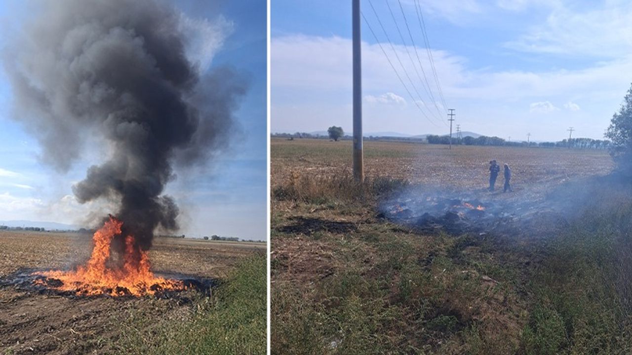 Yakılan borulardan çıkan alevler, rüzgarın etkisiyle çevredeki otluk alanlara sıçradı ve bölgede yoğun duman oluştu.