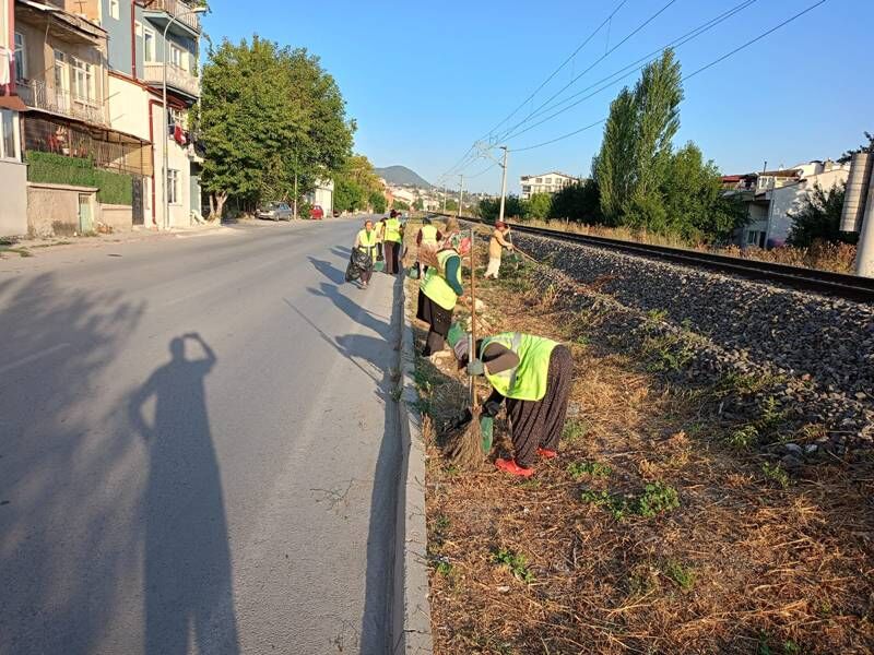 Çalışmalarda çöpler toplanırken, kaldırım kenarları ve yol üzerindeki birikintiler de ekipler tarafından özenle temizlendi.
