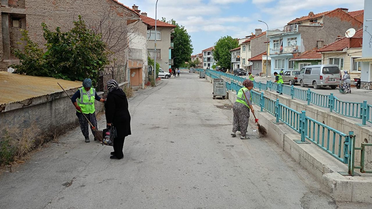 Sabah saatlerinde başlayan çalışmalarda sokaklar, kaldırımlar ve çöp konteynerlerinin çevresi özenle süpürüldü.