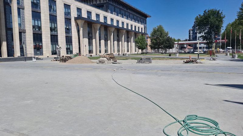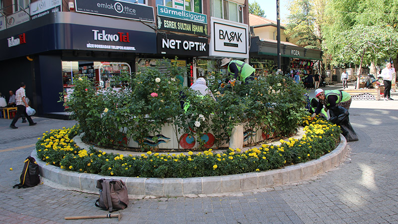 Belediye hizmet binası önünde bulunan süs havuzlarının yerine granit taş döşemesi yapıldı. Belediye, daha önce de Cumhuriyet Caddesi'ndeki süs havuzlarına çiçek dikmişti.
