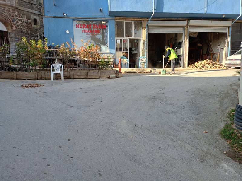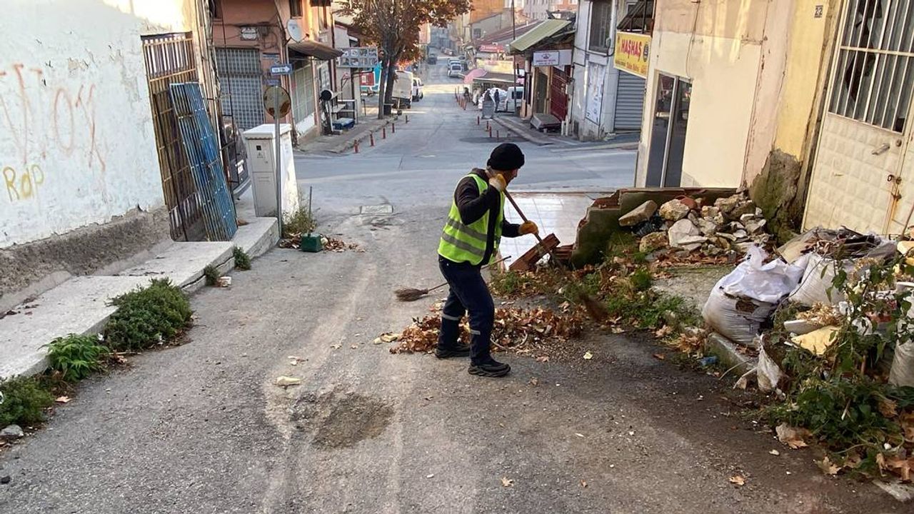 Dökülen yapraklar nedeniyle kayganlaşan yollar ve tıkanan mazgallar, ekiplerin sabah erken saatlerde başlattığı temizlik çalışmalarıyla temizlendi.
