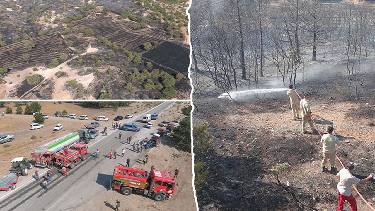 Kütahya'da tarlada başlayıp ormanlık alana sıçrayan yangın, ekiplerin hızlı müdahalesi sonucu kontrol altına alındı.