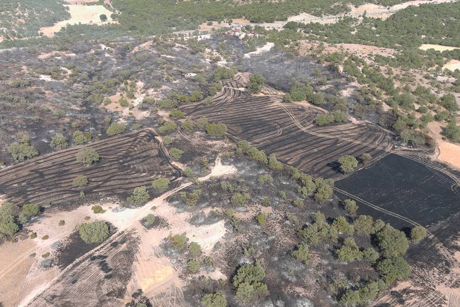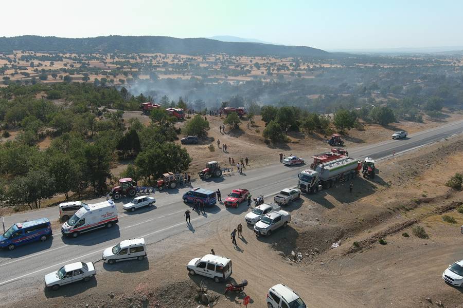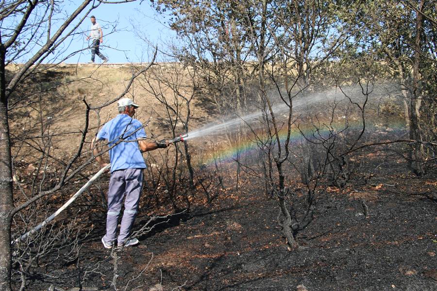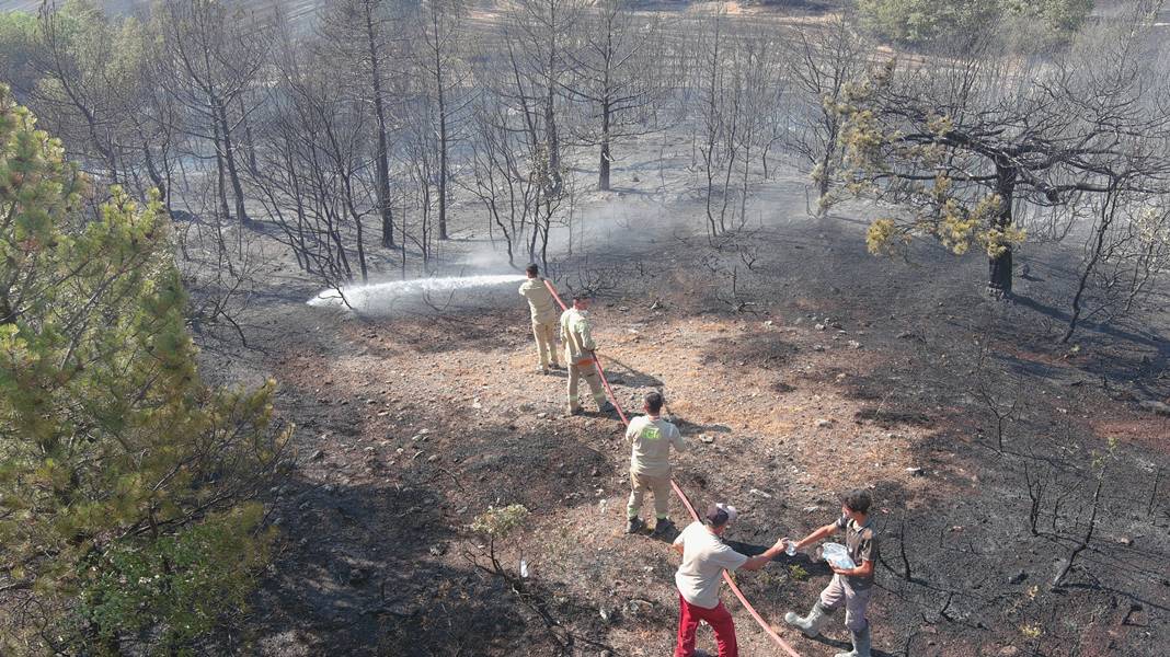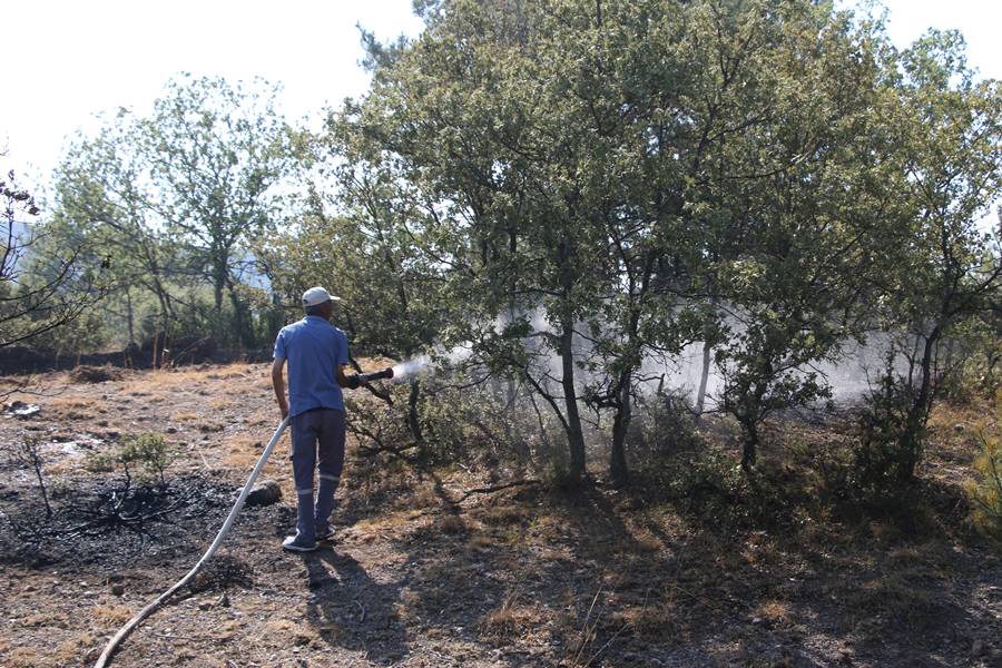 Ekiplerin hızla müdahale ederek bölgeye yayılmadan kontrol altına alınan yangının, ekili tarım arazisinden başladığı belirlendi. Yangın söndürme çalışmalarına köylüler de destek verdi.