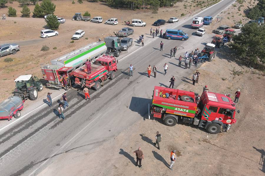İhbar üzerine bölgeye Kütahya Orman Bölge Müdürlüğüne bağlı çok sayıda arazöz ile itfaiye ekipleri sevk edildi.