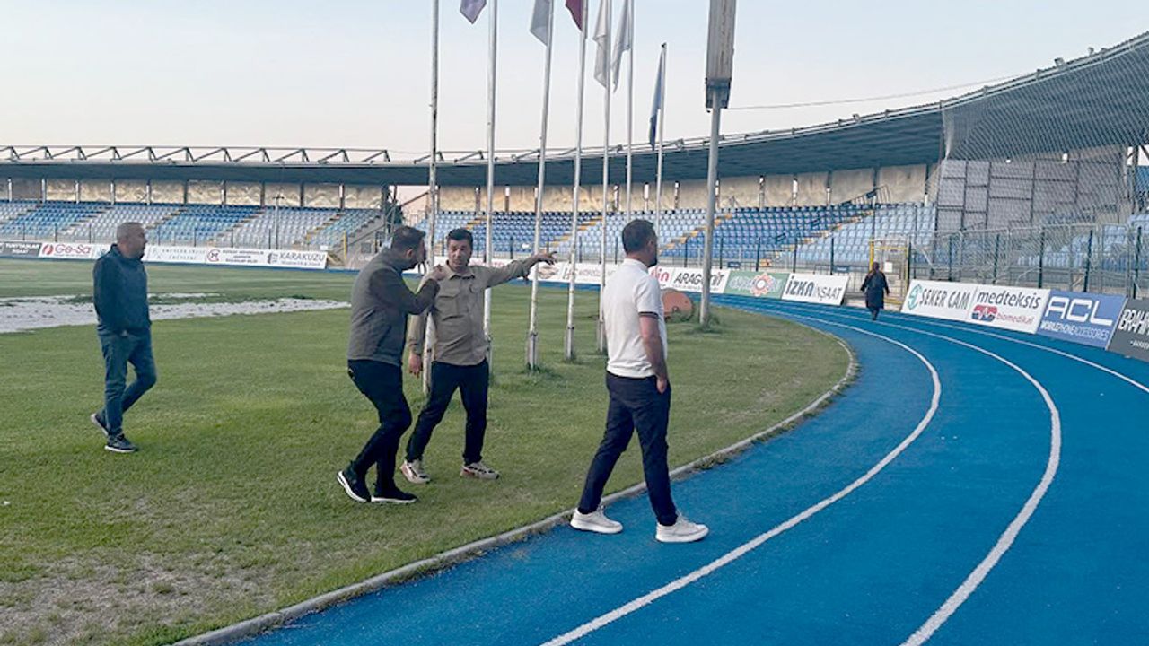 Mavi Lacivertliler maç için hazırlıklarını tamamlarken, Dumlupınar Stadı’nda zemin kontrolleri gerçekleştirildi.