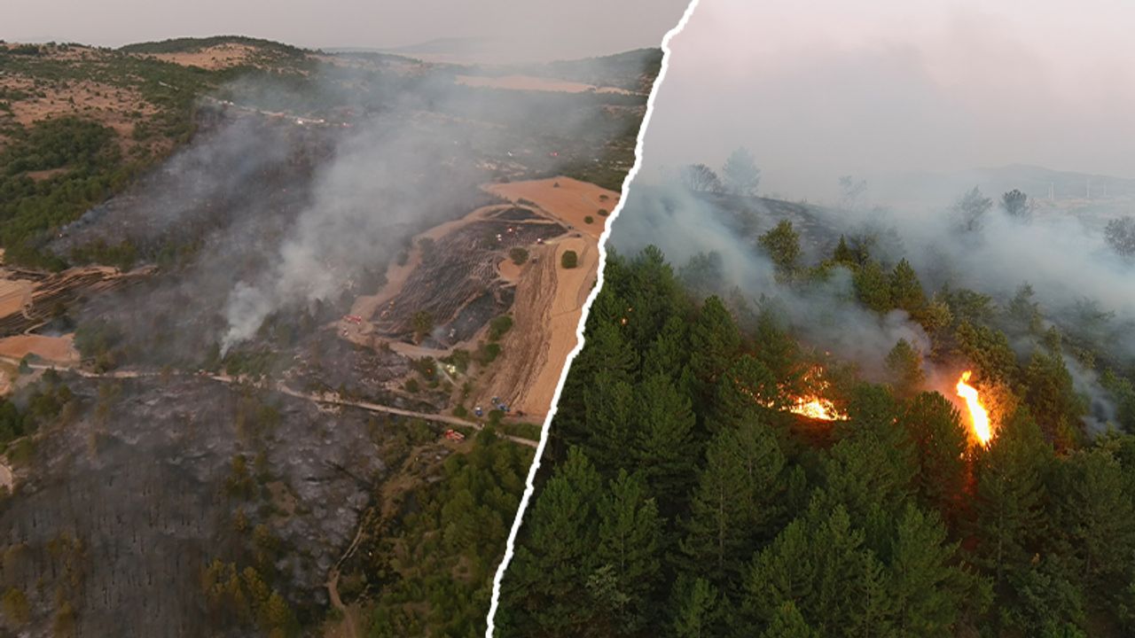 İlçede iki farklı bölgede çıkan yangın ekiplerin havadan ve karadan müdahalesiyle kontrol altına alınmıştı.