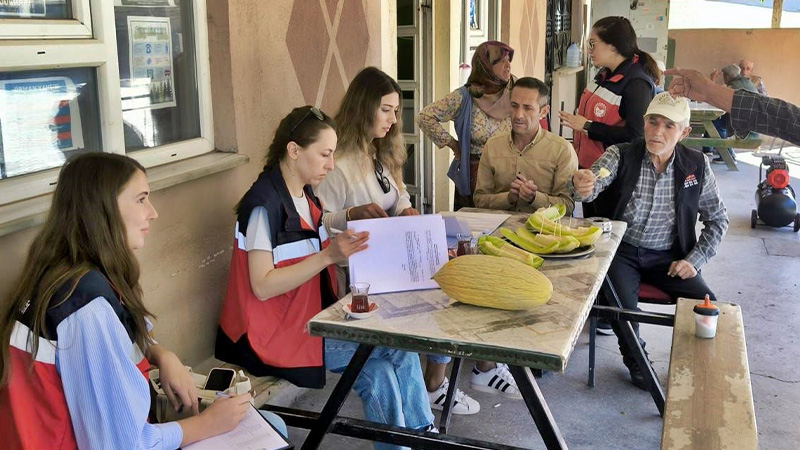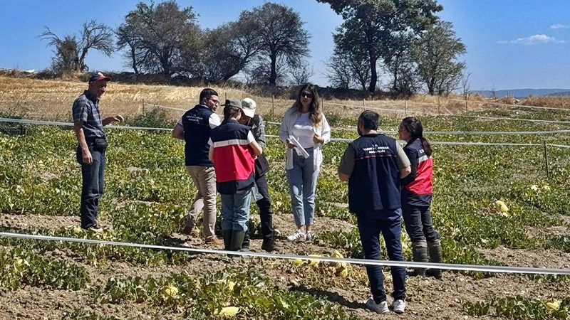 Emet İlçe Tarım ve Orman Müdürlüğü teknik personelleri, proje paydaşlarına ait kavun ekili tarlalardan numuneler alarak sertifikasyon sürecinin gereklilikleri hakkında üreticilere detaylı bilgi verdi.