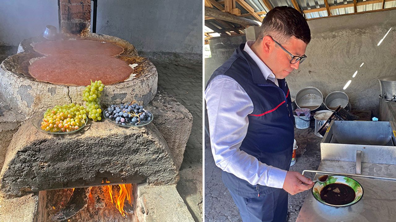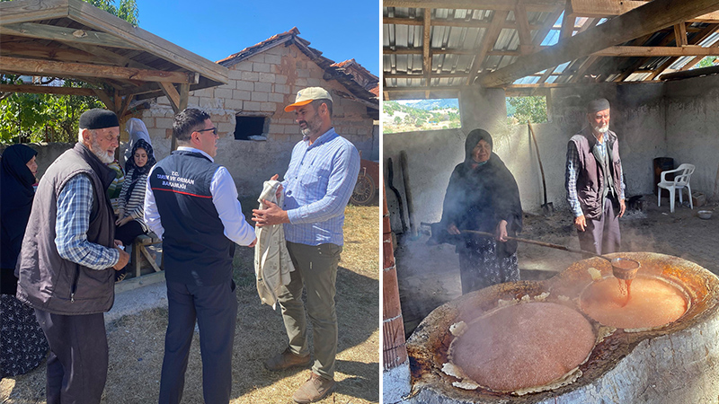 Ziyaret sırasında geleneksel yöntemlerle üretim yapan yöresel ve organik pekmez üretim evi yerinde incelendi, üreticilerle bilgi alışverişinde bulunuldu.