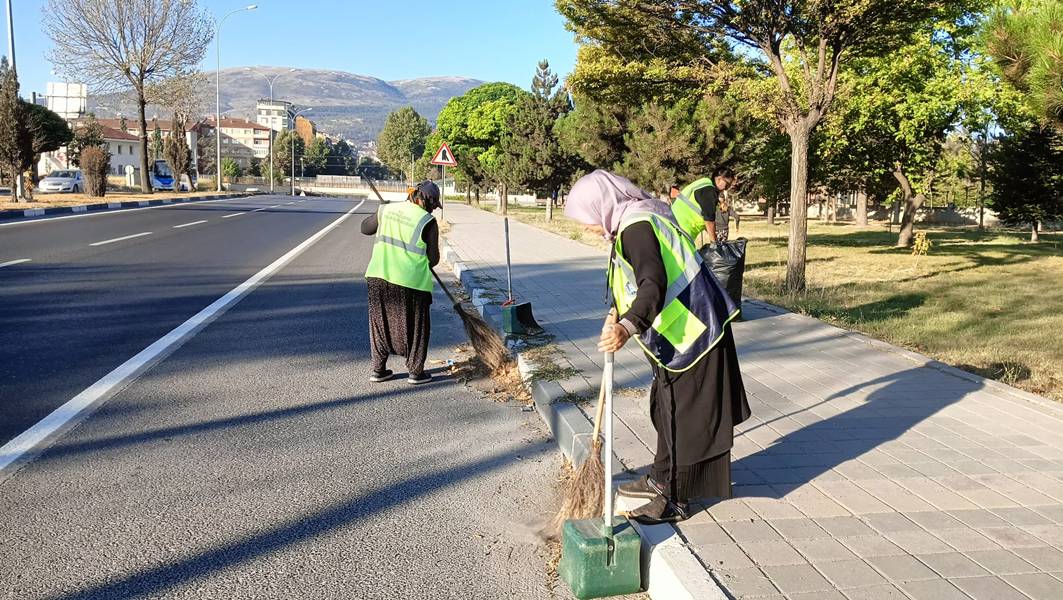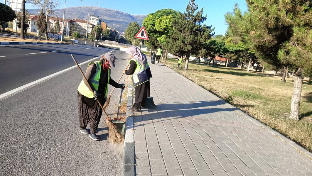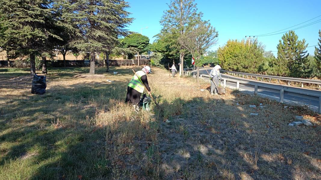 Yapılan çalışma kapsamında kaldırımlar süpürülerek temizlendi, yol kenarlarında biriken atıklar toplandı ve yeşil alanlarda bakım yapılarak yabani otlar biçildi.